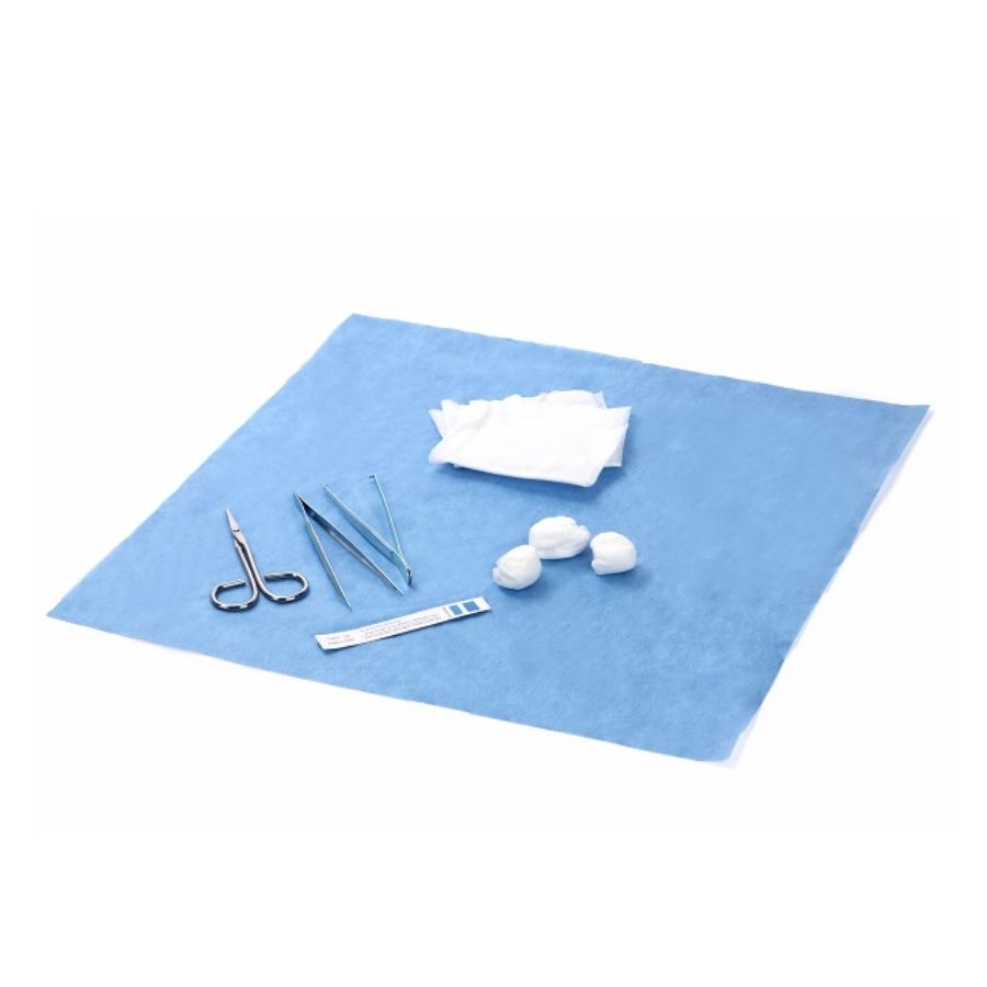 Spunlace topları, 35g/m² spunlace, 3 adet Tek kullanımlık pansuman forsepsi, metal, sivri uçlu, 12cm, 1 adet Doku forsepsi, metal, 12cm, 1 adet Spunlace pedler, 14,5 x 19,35 cm, katlanmış boyut 7,25 x 9,75 cm, 4 katlı, 3 adet Dikiş alma makası, metal, 14cm, 1 adet Tepsi, 17 x 11cm, 1 adet Sargı, 40 x 40cm, 35g/m² SMS dokunmamış kumaş, 1 adet Sterilizasyon gösterge kartı, 1 adet |